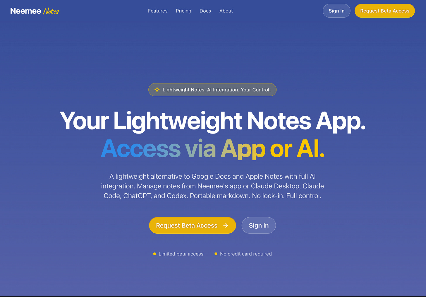 If you’re juggling multiple AI tools, frustrated with data silos, or interested in seeing what agentic coding can produce, I’d love to have you try Neemee Notes and give me feedback.